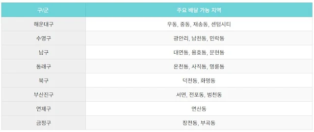 위 지역 외에도 대부분의 동네에서 당일 또는 익일 배송 가능!